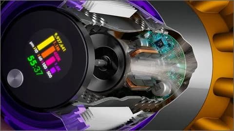 Powerful and intelligent cordless vacuum for whole-home deep cleaning, with technology that reveals invisible dust and adapts suction based on floor type and dust volume.