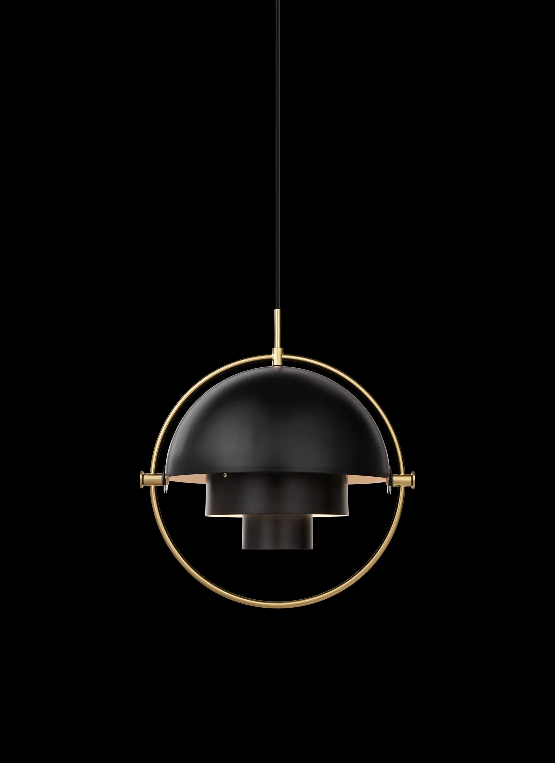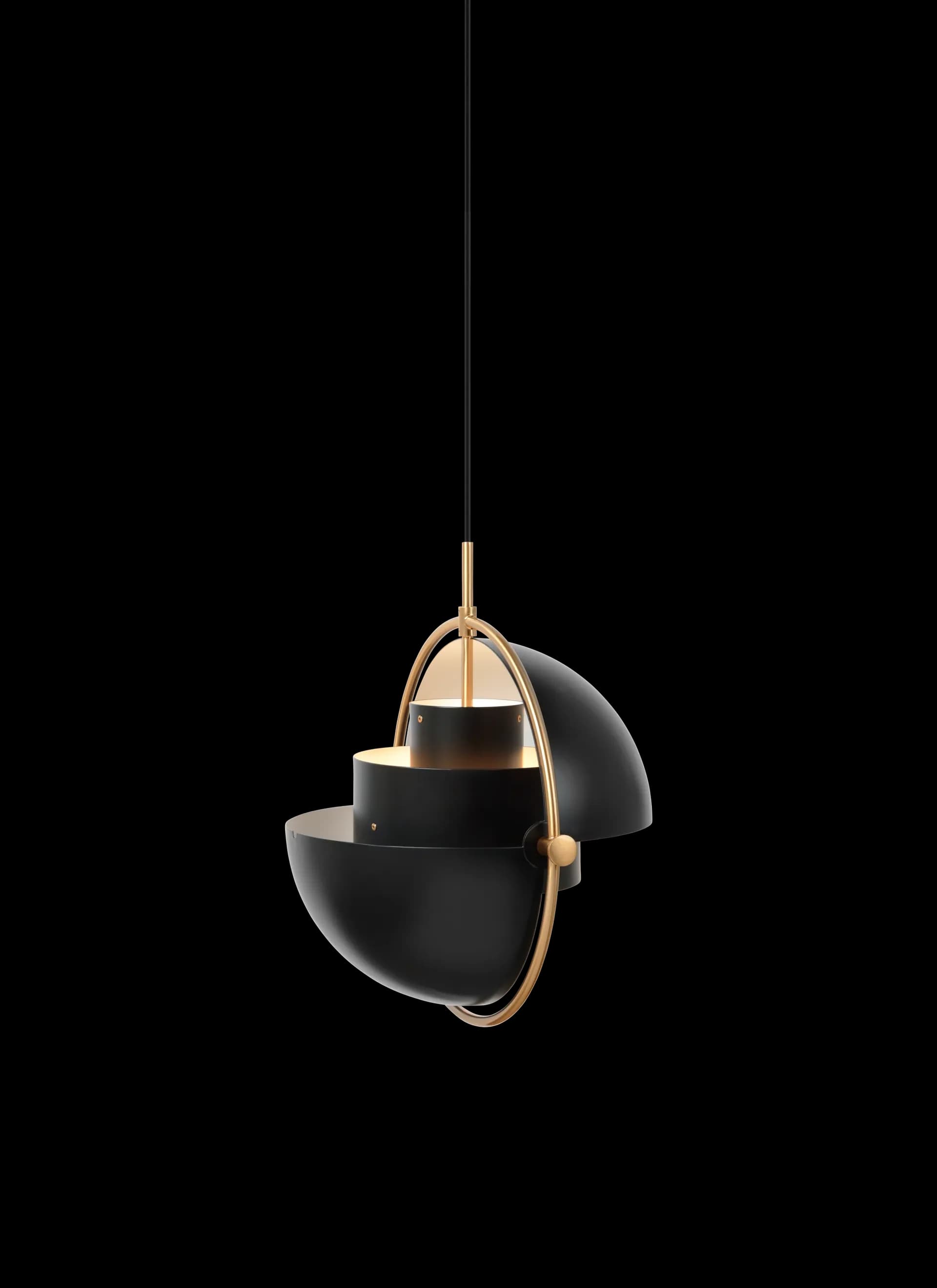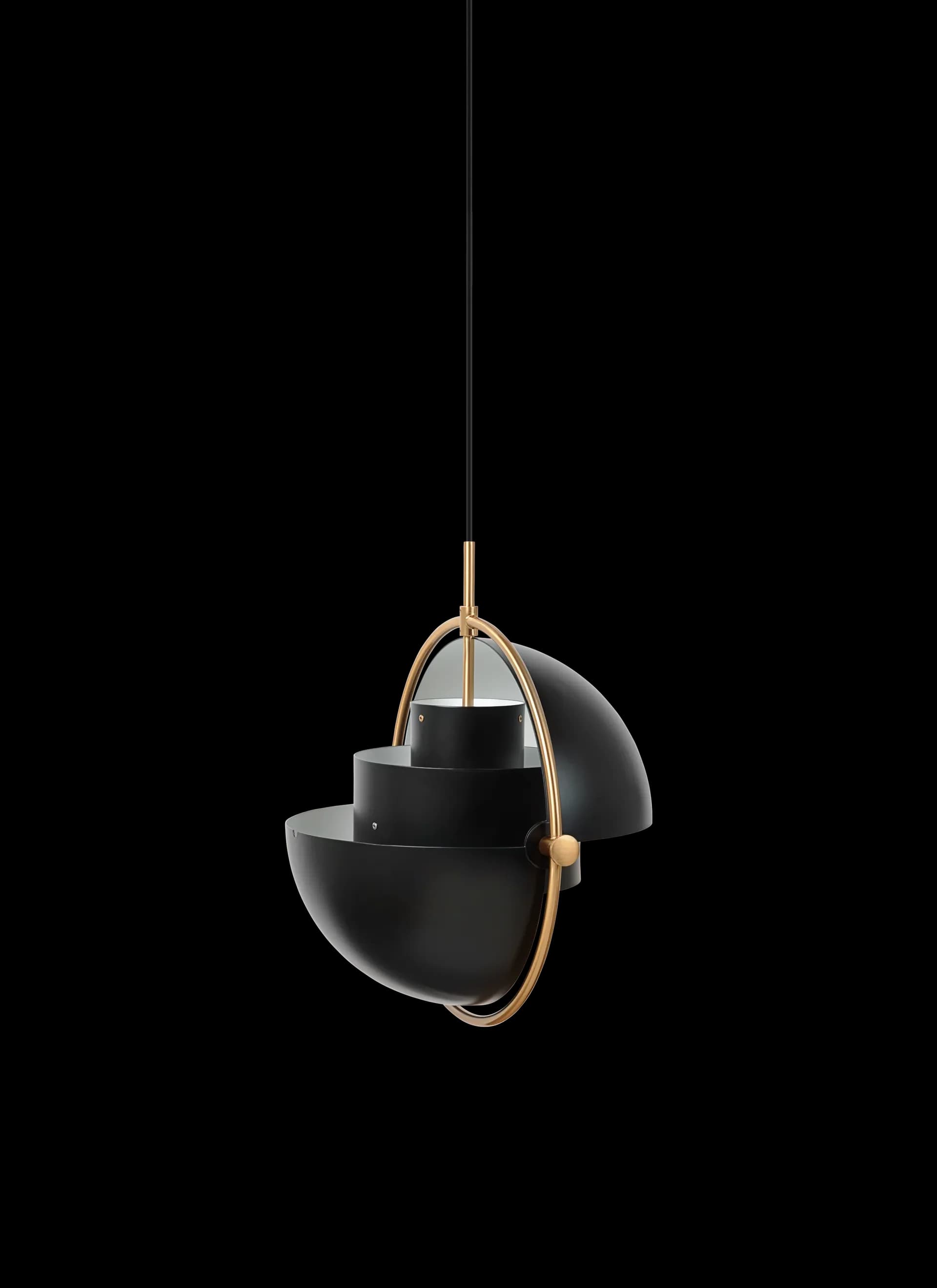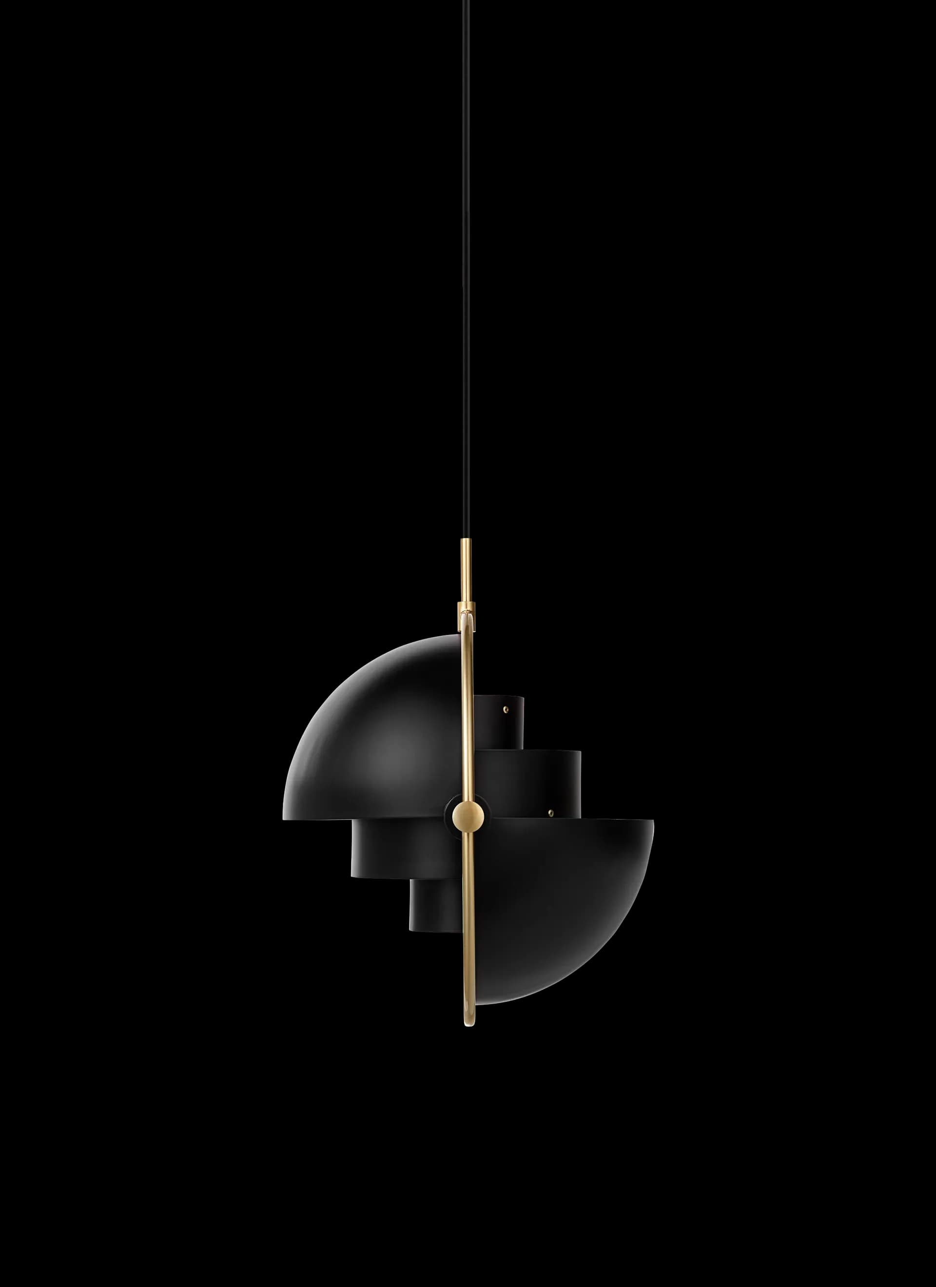 The Multi-Lite Pendant embraces the golden era of Danish design with its characteristic shape of two opposing outside, mobile shades that enable creating a personal installation and a wide range of lighting values in a room.