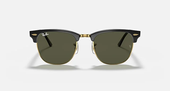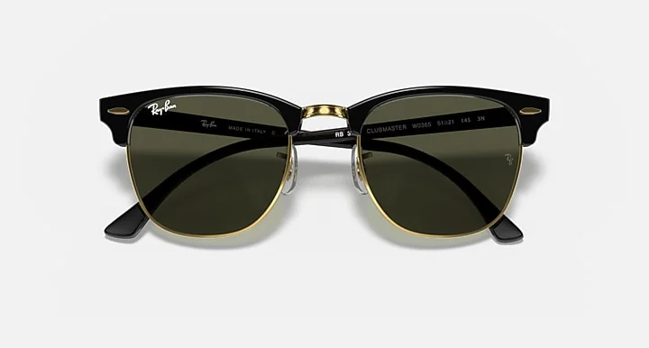 The Icon Series represents 80 years of passion in four signature shapes, carrying the creative legacy of boundary-pushers who shaped the world we see today. The CLUBMASTER CLASSIC embodies iconic style with a square acetate frame in polished black on gold, paired with G-15 green solid color lenses. Adjustable nose pads ensure comfort and fit, while lens technology offers sharp vision with anti-reflective and anti-scratch treatments.
