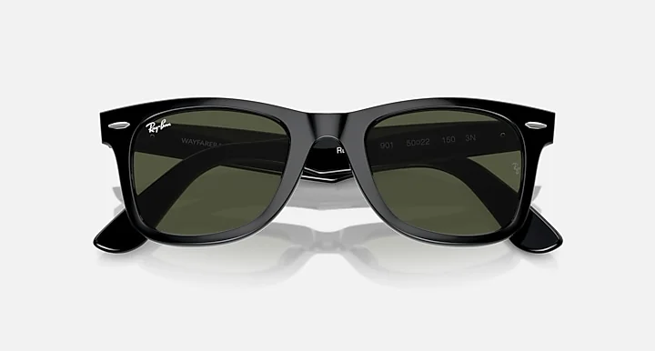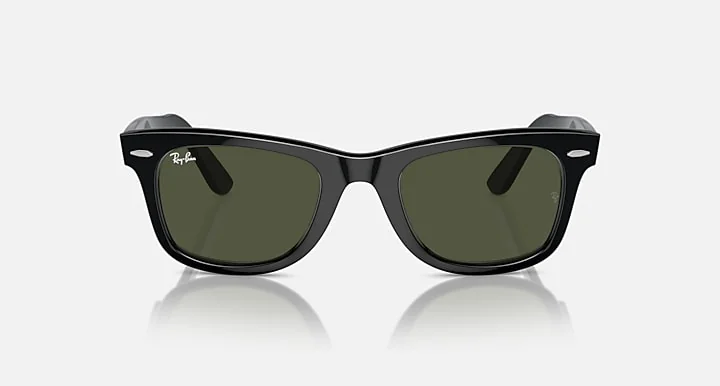 The Wayfarer has sat on enough faces to stop being a style and start being a fact. Ray-Ban's original 1952 silhouette, still made the way it was drawn: square acetate frame, G-15 green lenses, the small etched logo at the corner you notice once and then forget.