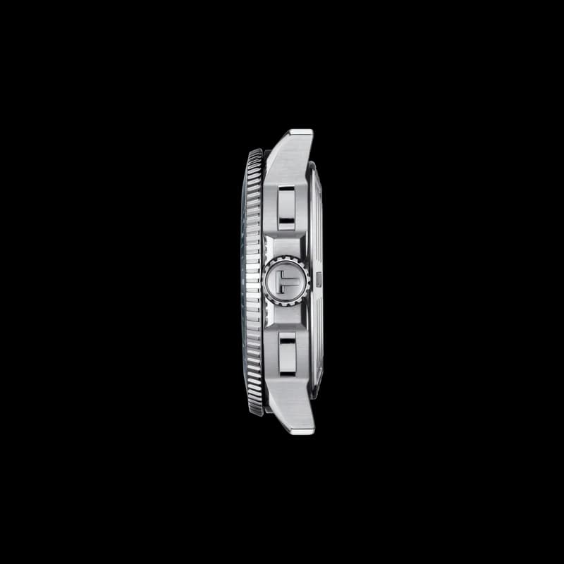 The Tissot Seastar 1000 is the ultimate watersport watch, featuring high water-resistance up to 30 bar (300 m / 1000 ft), a screw-down crown and caseback, and a unidirectional ceramic bezel.
